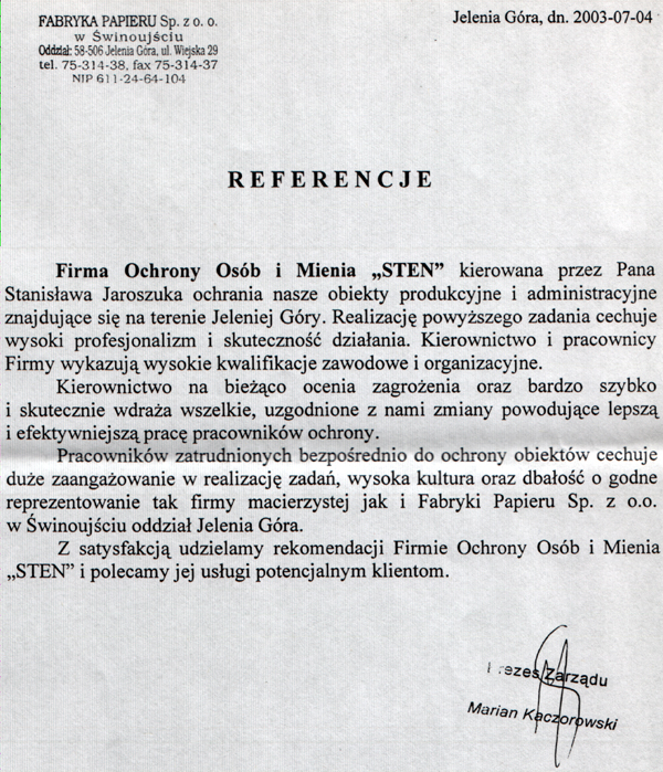 Rekomendacja Wiarygodności Firmy